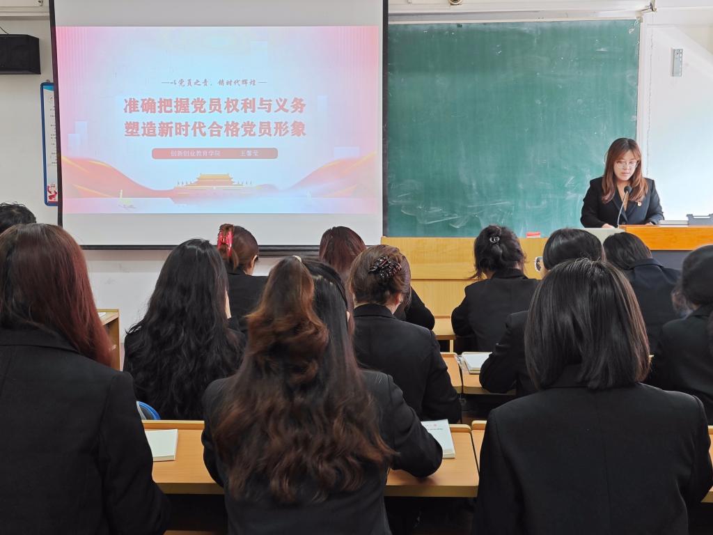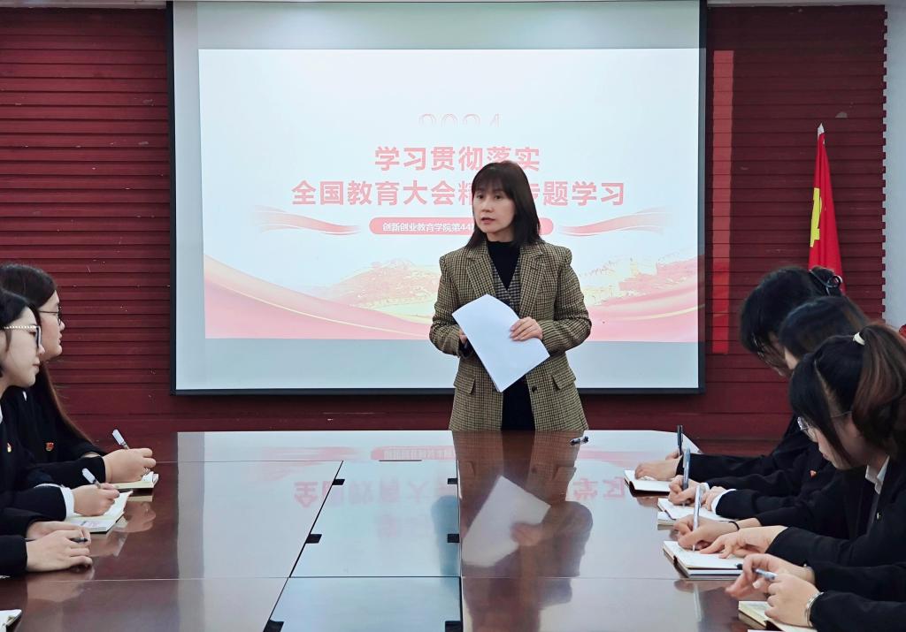 党委书记綦明霞以《学习贯彻落实全国教育大会精神专题学习》为题,围绕“锚定建成教育强国的战略目标”“我们要建成怎样的教育强国”“全面推进教育强国建设的战略任务和重大举措”三方面带领大家深入解读习近平总书记在2024年全国教育大会上的重要讲话精神,鼓励全体学员积极响应党中央的号召,将改革创新精神融入专业学习与实践中,全面提升自身素质,强化先锋引领,坚定理想信念,锤炼能力素质,争当教育专业化人才。