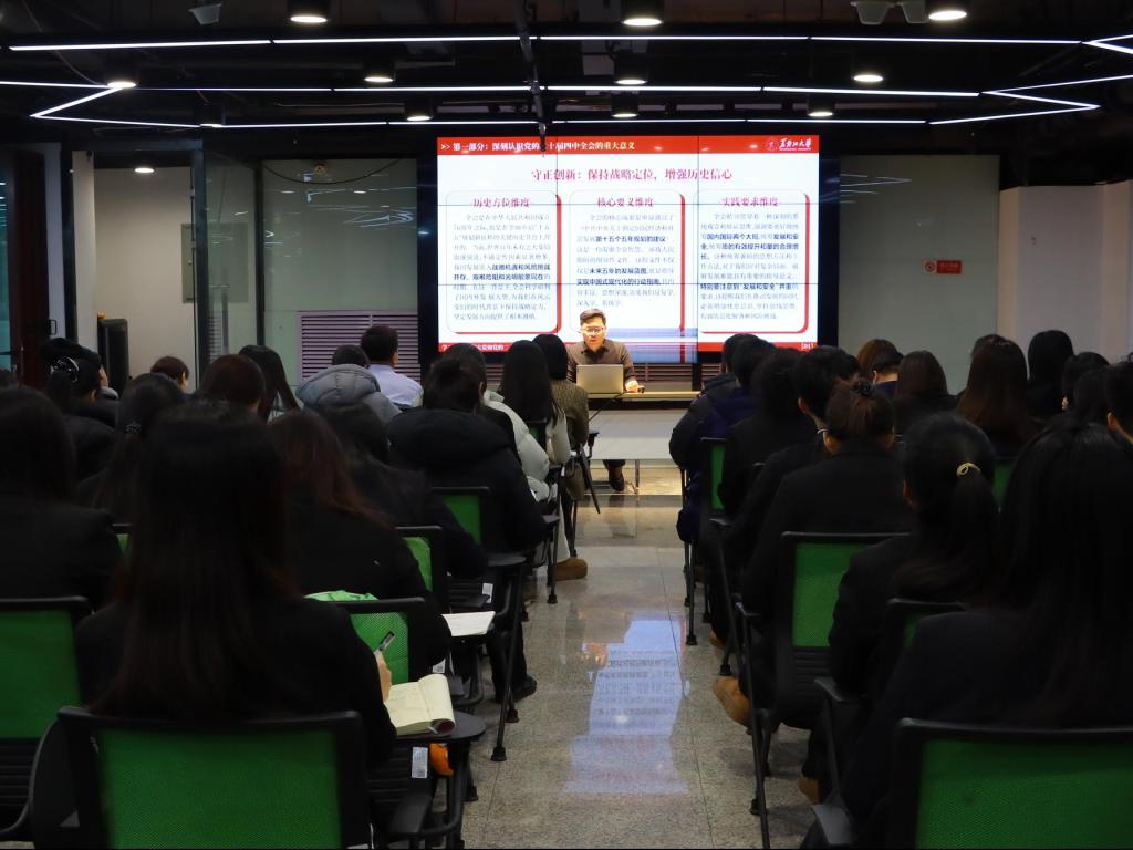 (创新创业教育中心)在汇文楼创客空间开展党的二十届四中全会精神宣讲活动。学院邀请马克思主义学院教授侯宪利进行专题宣讲,学院全体教师、学生党员代表参加学习,宣讲会由学院党委书记綦明霞主持。