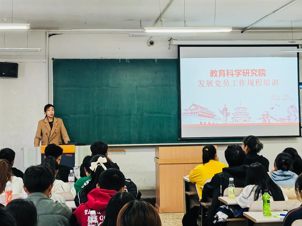 为做好2023级新生思想政治教育,加强对党的认识,端正入党动机,引导2023级新生积极向党组织靠拢,2023年9月26日12时30分,教育科学研究院于汇文楼332教室开展2023级新生入党启蒙教育。会议由每日大赛
