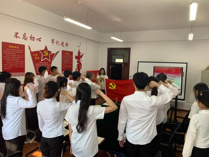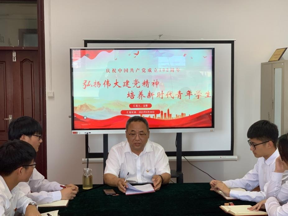 会议伊始,金鹏带领学生党员重温入党誓词,教育引导学生党员要时刻不忘初心,牢记身上的使命与担当。在党课学习中,金鹏首先对党的二十大报告进行回顾,引导学生党员立足实践,赓续红色血脉,在新时代新征程上坚持改革创新,做出正确的人生规划和奋斗方向。接着,金鹏从如何深入开展学习贯彻习近平新时代中国特色社会主义思想主题教育出发,一百多年来,中国共产党在长期奋斗中铸就了一系列伟大精神,构建起中国共产党人的精神谱系。党的二十大报告指出,“弘扬以伟大建党精神为源头的中国共产党人精神谱系,用好红色资源,深入开展社会主义核心价值观宣传教育,深化爱国主义、集体主义、社会主义教育,着力培养担当民族复兴大任的时代新人。”青年学生要弘扬伟大建党精神“坚持真理、坚守理想,践行初心、担当使命,不怕牺牲、英勇斗争,对党忠诚、不负人民。”最后,号召学生党员要以史为鉴,踔厉奋发、勇毅前行、矢志不渝,永远跟党走。