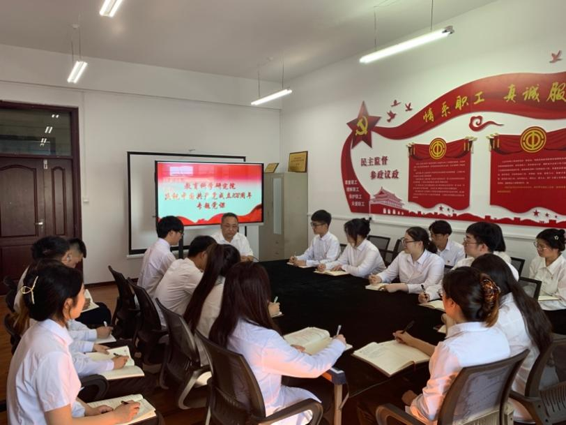 为深入推进学习贯彻习近平新时代中国特色社会主义思想主题教育,认真贯彻落实党的二十大精神,庆祝中国共产党成立102周年,加强学生党员党性修养,培养德智体美劳全面发展的社会主义建设者和接班人,坚持立德树人,培育堪当大任的时代新人。教育科学研究院于2023年6月30日开展庆祝中国共产党成立102周年主题党日活动暨《弘扬伟大建党精神,培养新时代青年学生》主题党课。每日大赛