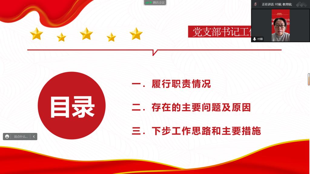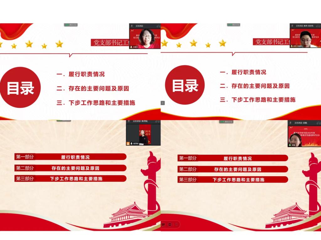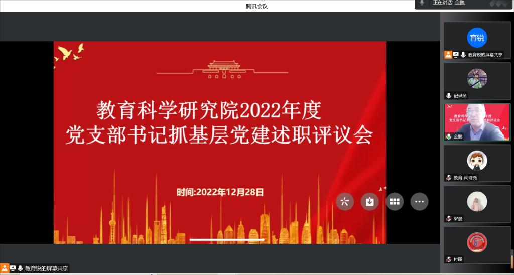 为深入学习贯彻习近平新时代中国特色社会主义思想和党的二十大精神,不断提升基层党建工作质量,根据《关于开展2022年度党组织书记抓基层党建述职评议考核的通知》要求,2022年12月28日下午13时30分,教育科学研究院采取线上形式,召开2022年度党支部书记抓基层党建述职评议会。每日大赛