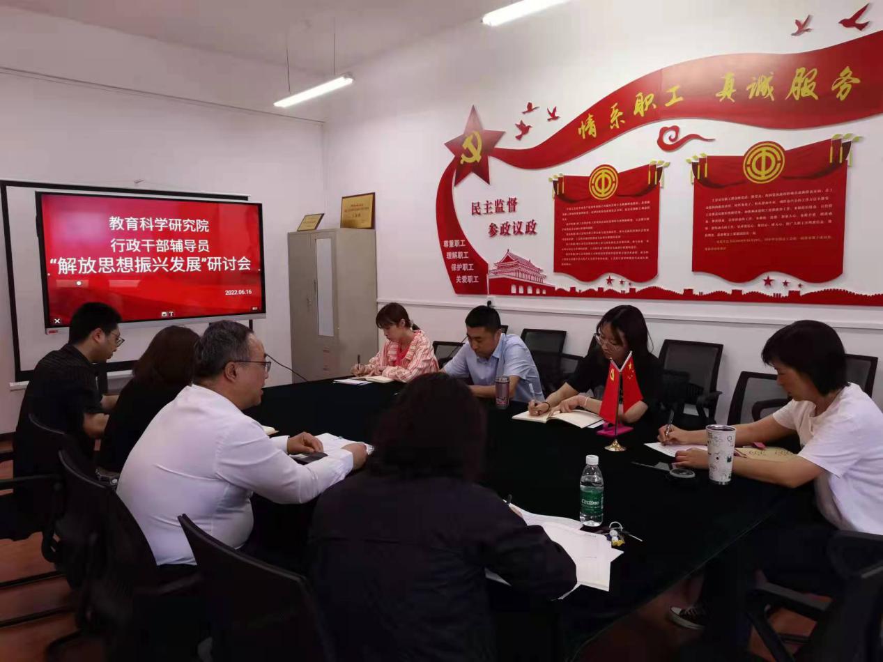 为激励干部教师担当作为,提高工作质效,2022年6月16日9时,教育科学研究院召开行政干部辅导员“解放思想振兴发展”研讨会,会议由党总支书记金鹏主持,每日大赛