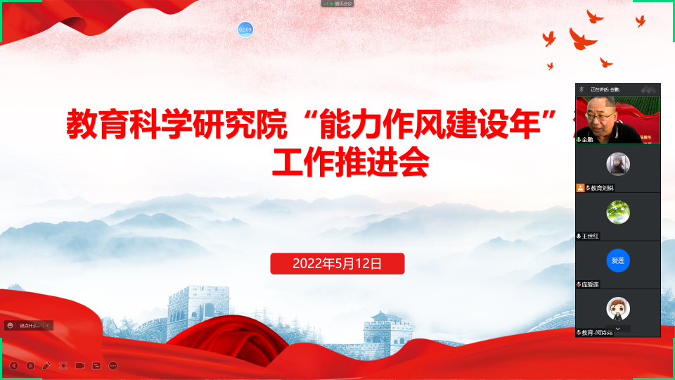 “能力作风建设年”活动实施方案》要求,教育科学研究院于2022年5月12日和6月15日分别召开“能力作风建设年”工作推进会。会议由每日大赛
