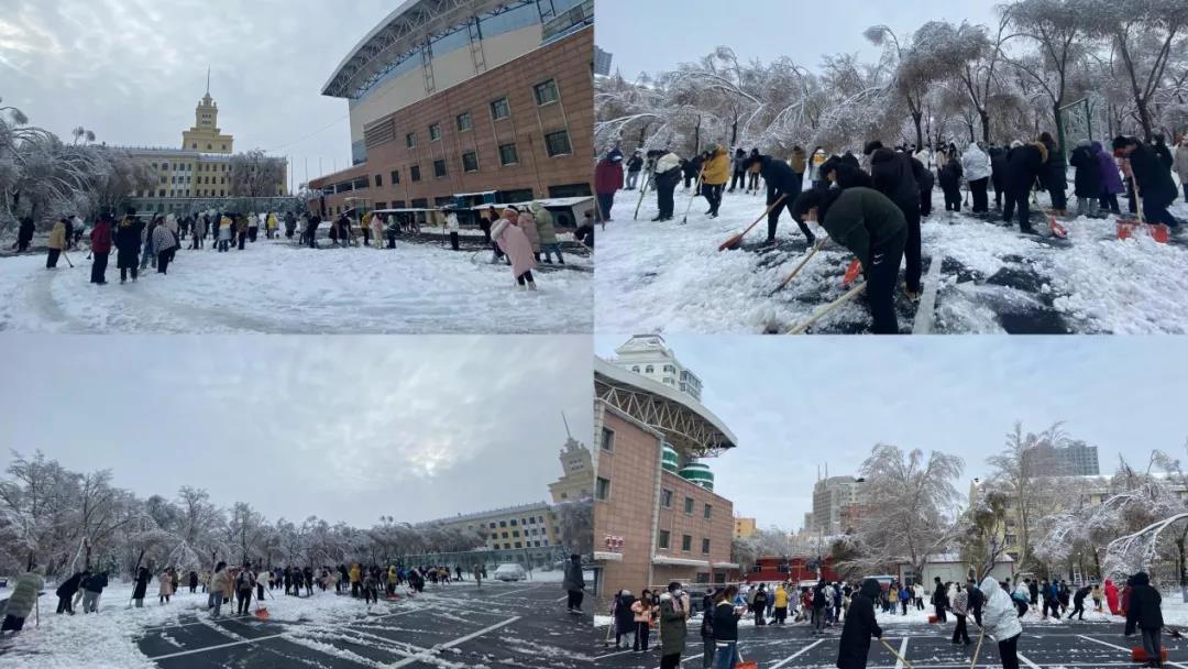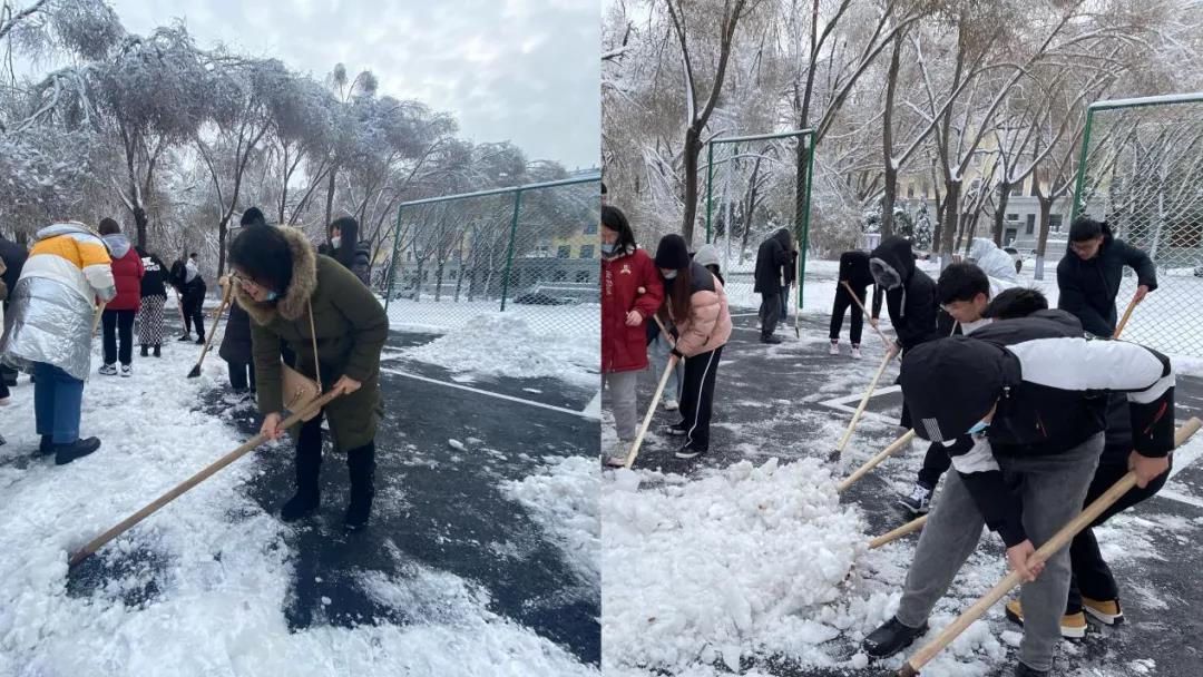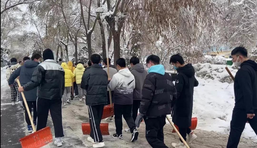 同学们手持清雪工具,秩序井然,分工明确,每日大赛
