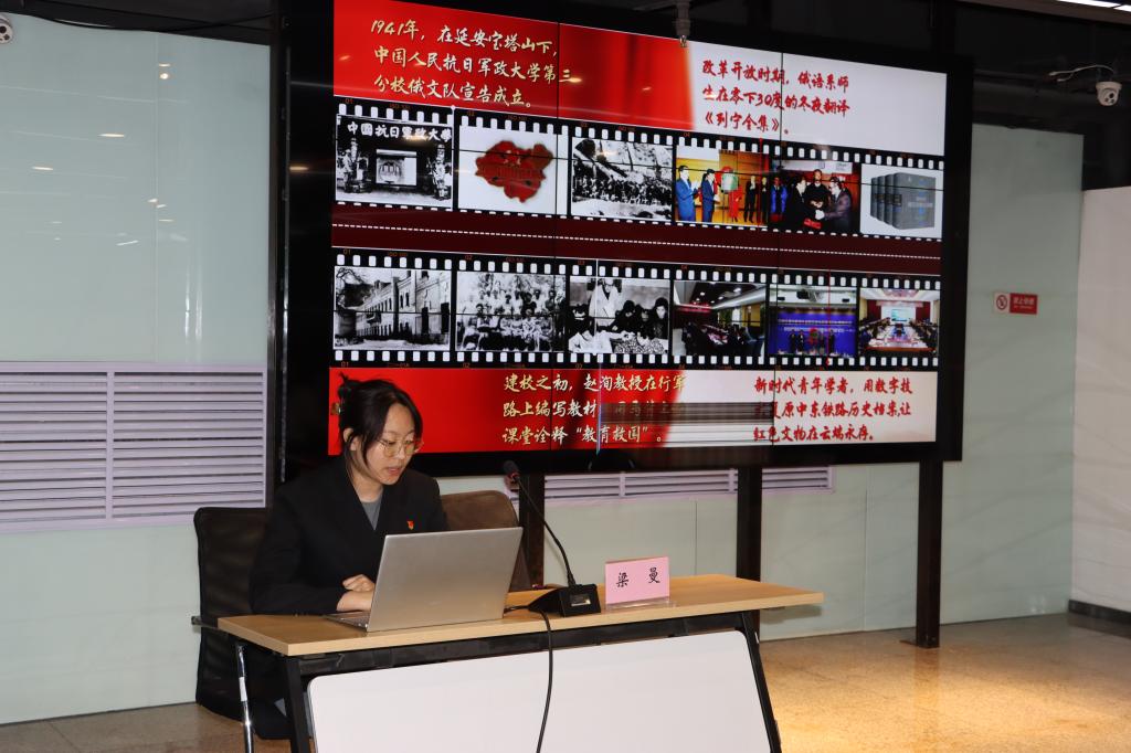 团委副书记梁曼以《黑土脉搏与时代共燃,解码红色学府的精神基因》为主题,围绕传承、担当、引领三个关键词展开讲解,指出每日大赛