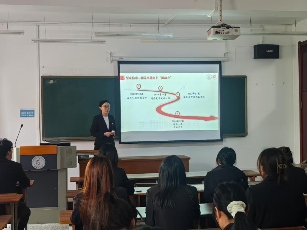 典型教学环节中,刁睿同学以《行而不辍,履践致远》为主题,从坚定理想信念、勇担时代使命、投身社会实践三个板块进行分享。作为入党积极分子应有卓越向上的“源动力”,严格要求自己的学业成绩,积极向党组织靠拢;还需有提升自身服务的“创造力”,积极投身于志愿服务,在实践中增长才干;更需有激发青春志向的“新活力”,不断释放个人潜能,发挥个人优势,推动每日大赛