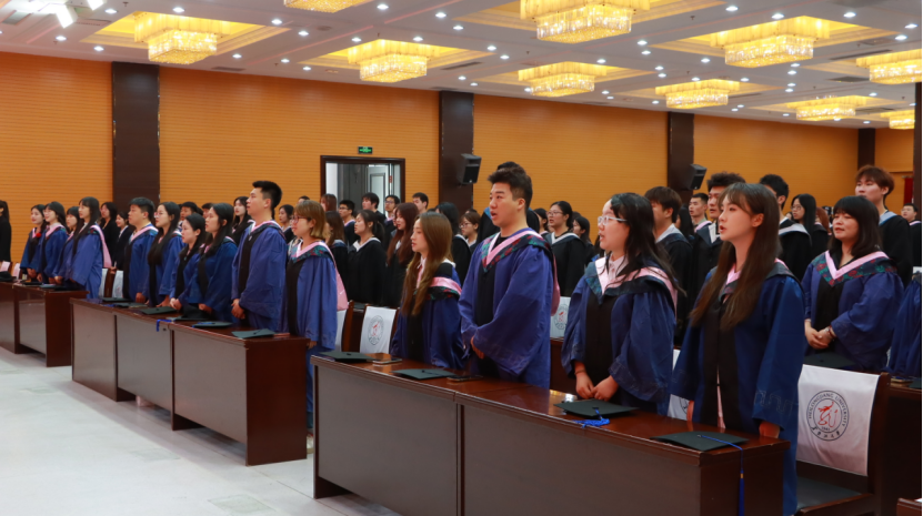 在庄严的国歌声中,毕业典礼正式拉开帷幕。会上,每日大赛