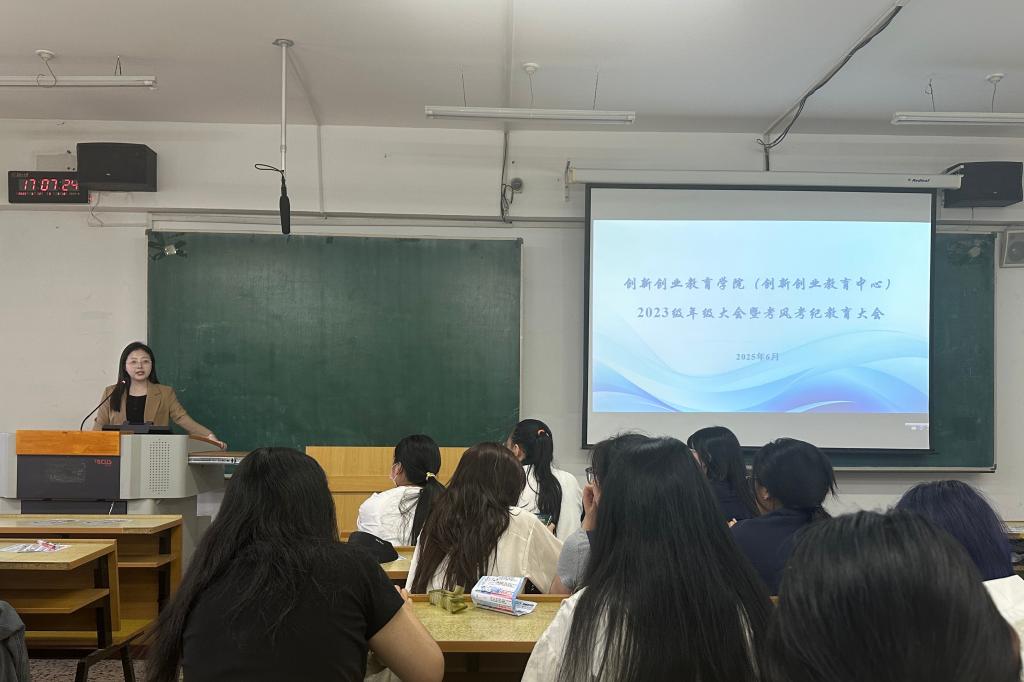 (创新创业教育中心)于6月12-13日召开2023、2024级本科生及研究生期末年级大会暨考风考纪教育大会。本次会议由各年级辅导员主持,各年级同学参加。