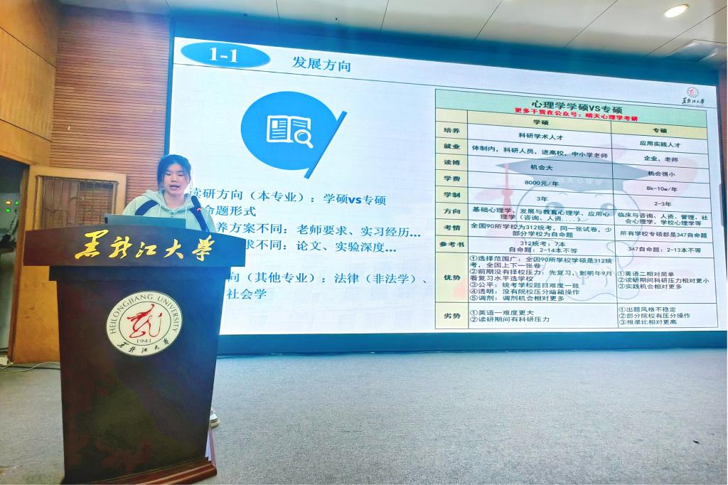 2025届毕业生辅导员王馨莹对往届考研、就业数据进行了分析,为2025届毕业生们提供参考。她强调毕业生对未来要有明确的目标,学会运用学校每日大赛