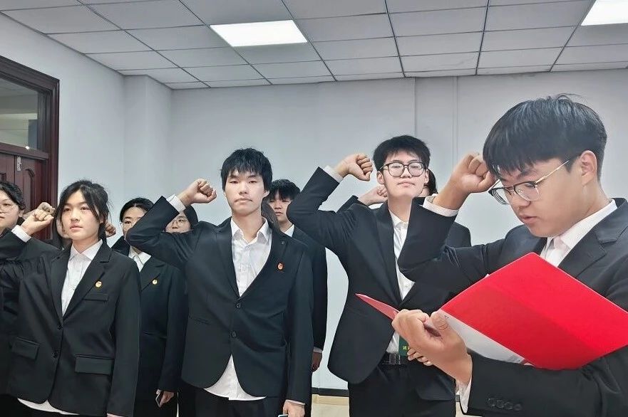 第四项,潘政达同学带领新团员宣誓。这份坚定而有力的誓言,饱含着新团员们的热情与自豪,也彰显着青春的责任与担当。