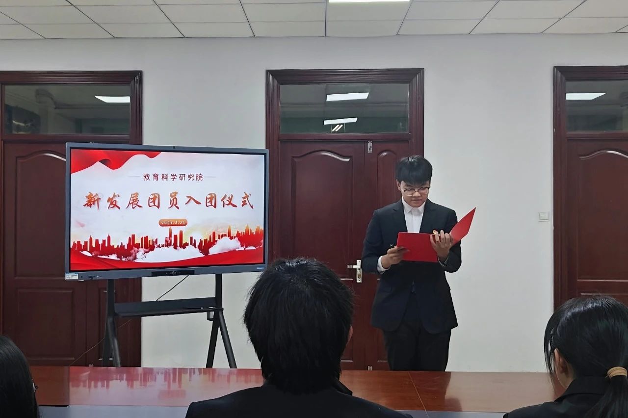 青春孕育无限希望,青年创造美好明天。在新的历史征程中,相信新团员们必将牢记使命、勇担重任,以更加高昂的斗志、更加坚定的信念、更加务实的态度,为实现中华民族伟大复兴的中国梦贡献青春力量。(教育科学研究院供稿)