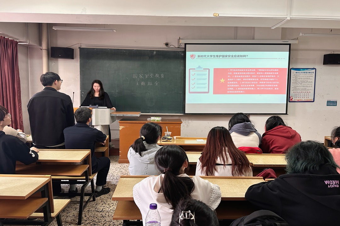 为深入贯彻落实习近平总书记关于加强国家安全教育的重要指示批示精神,引导我院学生深刻感受10年来国家安全工作取得的巨大成就,牢固树立国家安全意识,积极践行总体国家安全观,教育科学研究院2023级各班级于4月10日至12日分别开展“挺膺担当时代新人,筑牢国家安全防线”主题班会。本次班会由各班班长主持,全体2023级同学参加。