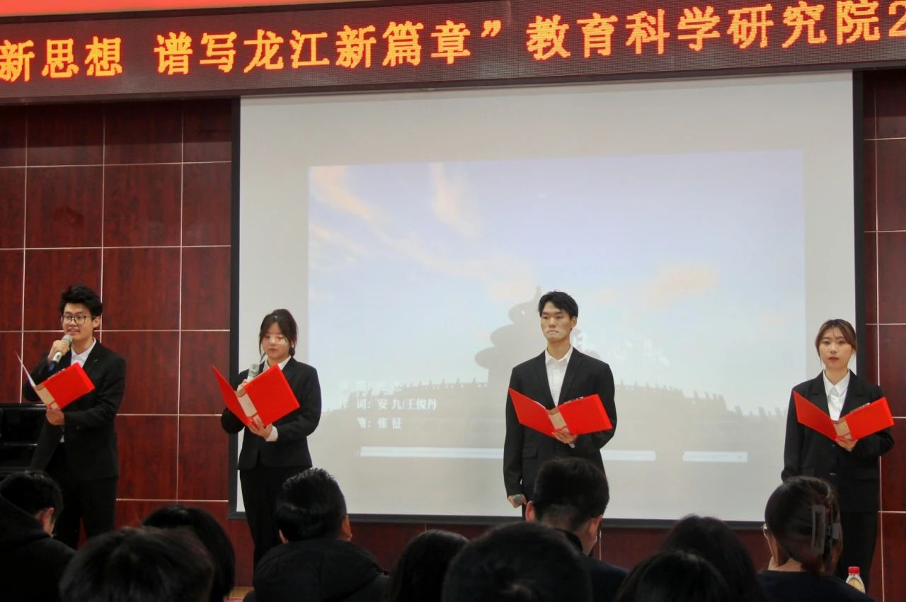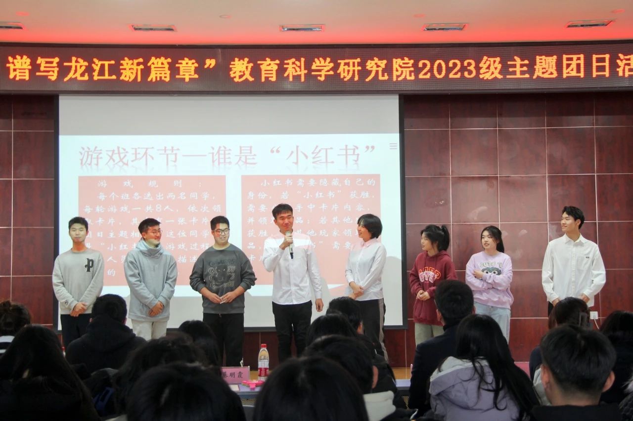 为深入学习贯彻党的二十大精神和团十九大精神,牢牢把握习近平总书记在黑龙江视察时的重要讲话重要指示精神,团结引领广大团员青年坚定跟党走,厚植爱国情怀,弘扬伟大建党精神,教育科学研究院积极响应校团委号召,于2023年12月11日10时在大学生活动中心报告厅组织2023级各专业团支部开展“学思践悟新思想 谱写龙江新篇章”主题团日活动。教育科学研究院党总支书记綦明霞、党总支副书记屈广宁、校团委宣传调研部副部长童一及各年级辅导员到会并给予指导,新生班主任、2023级全体学生参加活动。