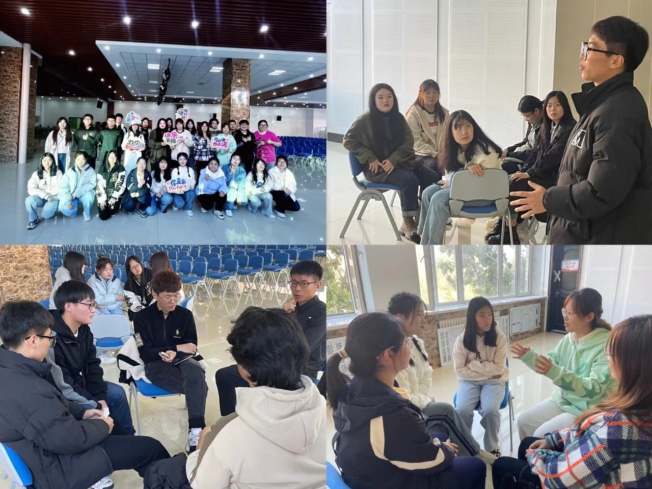 凝“新”力,聚“新”智,为帮助新生们排解压力,构建更加积极健康的大学心态,在寓知于乐中助力新时代大学生德智体美劳的全面发展,“沐心社”于2023年9月24日至10月15日间在汇文楼954室举办了4场素质拓展活动。