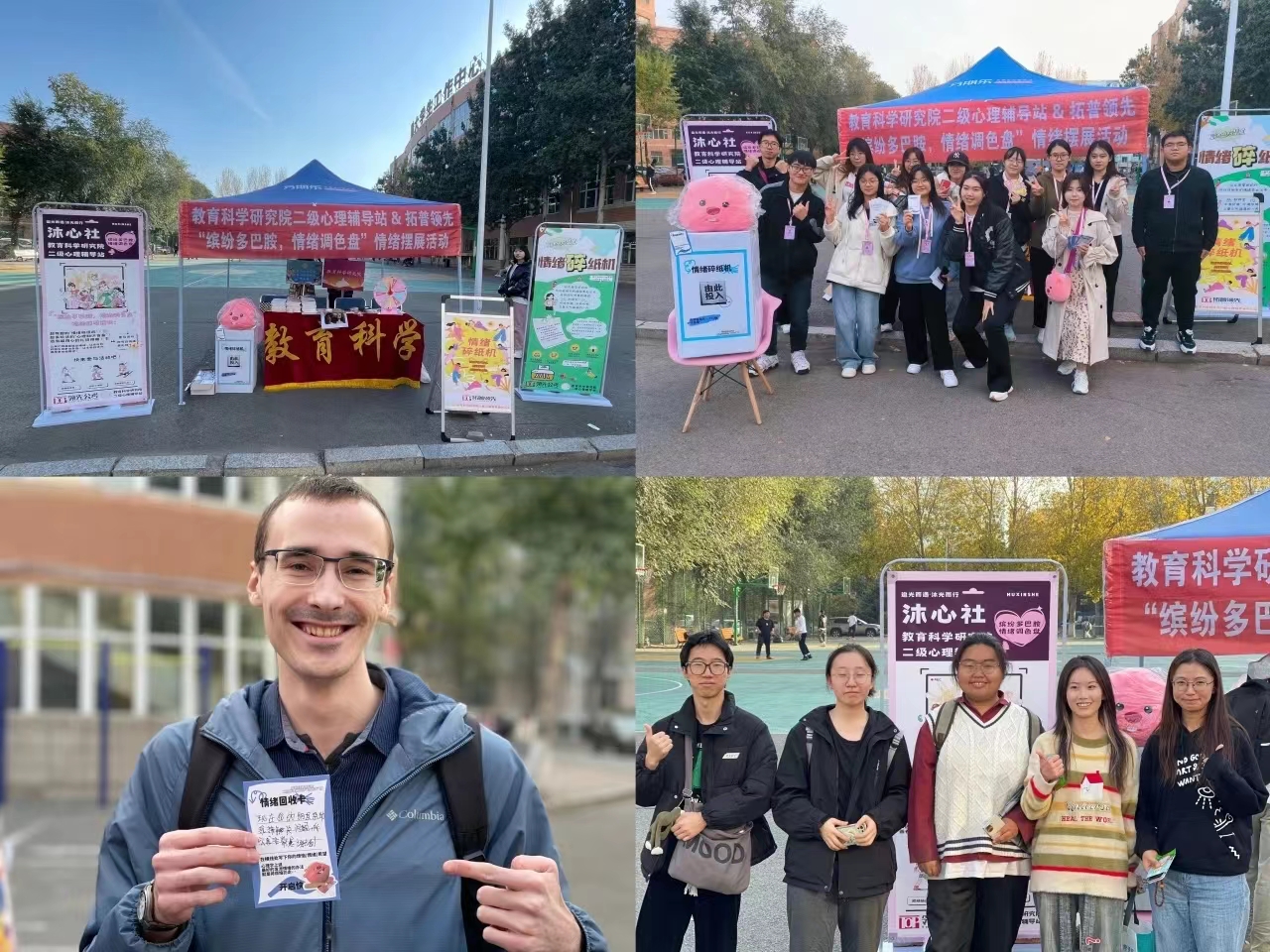 为帮助同学们用温暖稳定情绪,以快乐加载多巴胺,传递积极向上正能量,营造健康文明的校园氛围,教育科学研究院于10月25日13时30分开展“缤纷多巴胺,情绪调色盘”情绪摆展活动。