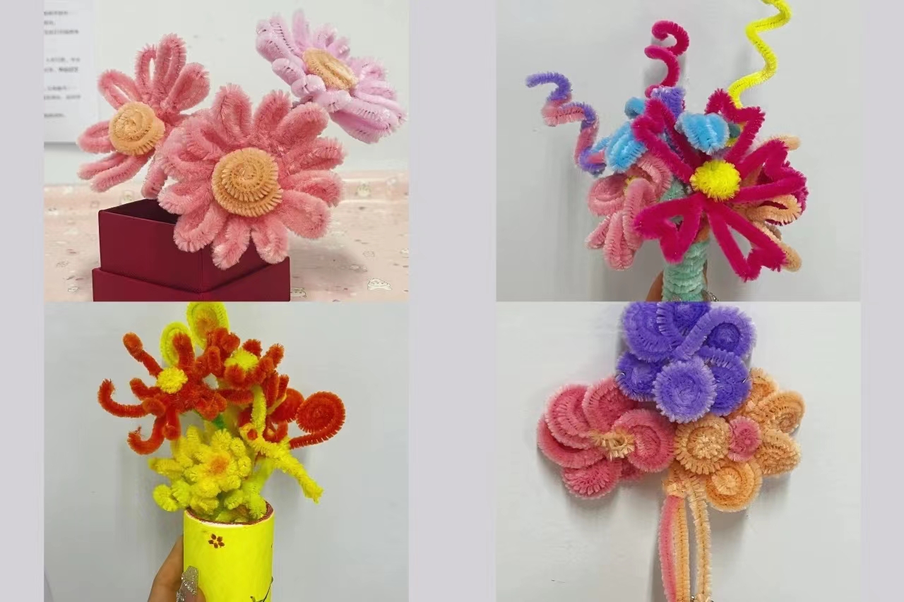 活动中同学们可以使用扭扭棒先行制作,将制作好的作品进行传递,再由后续学生接力完善丰富作品。在传递接力中促进同学们之间的交流互动,激发大家的创造力和想象力,有助于同学们提高审美情趣和动手能力,增强对美的追求和对生活的热爱。