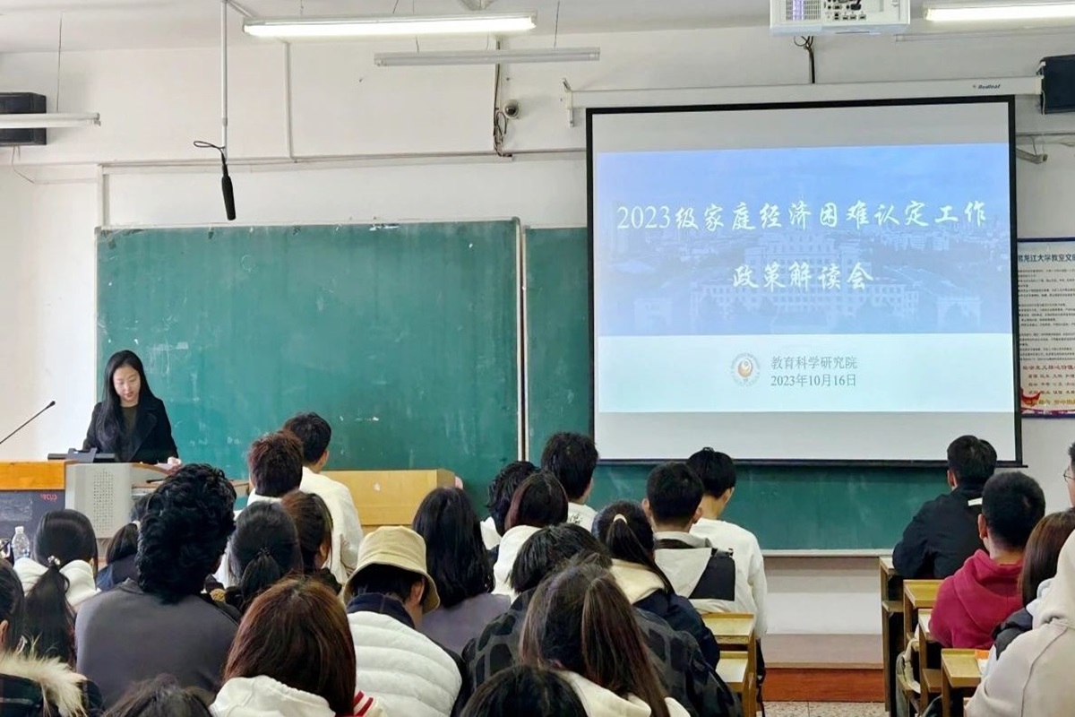 为做好新生2023年度家庭经济困难学生认定工作,进一步规范认定程序,保证家庭经济困难学生认定工作的公平、公正和公开。根据《学生工作部:关于开展2023级家庭经济困难学生认定工作的通知》相关要求,教育科学研究院于2023年10月16日12时40分在汇文楼445教室召开2023级家庭经济困难认定工作政策解读会。本次会议由2023级辅导员宋美琪主持,2023级全体学生参会。