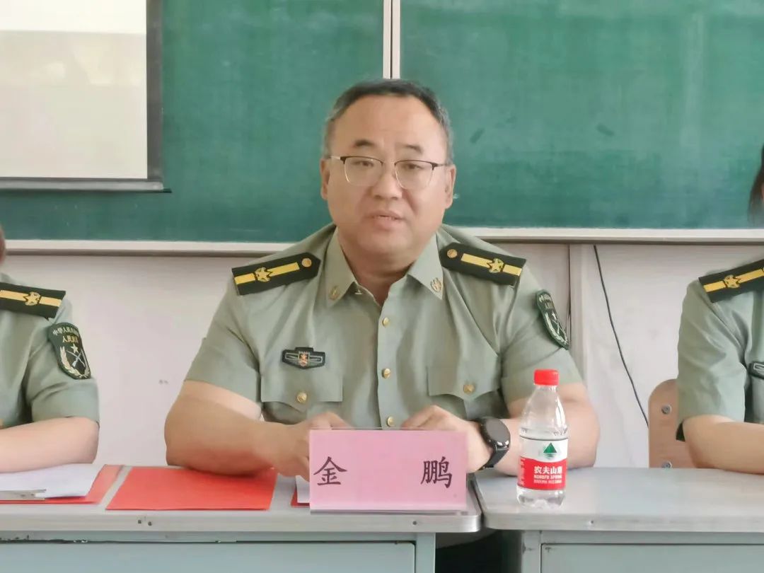 金鹏进行动员讲话。他表达了对同学们的关心,并提出三点建议:一是希望2022级全体学生以军训为新起点,正确认识军训的目的和意义,克服困难,积极参训;二是在队列训练中学会步调一致,在整理内务中学会严格标准,在战术训练中学会精益求精,不虚度学习时光,不断洗礼自我、超越自我、完善自我;三是在军训中充分磨练自己,培塑家国情怀,在新征程上做出不负时代、不负历史、不负人民的业绩,未来成为建设社会主义现代化强国的主力军,为推进强国建设、民族复兴贡献青年力量!
