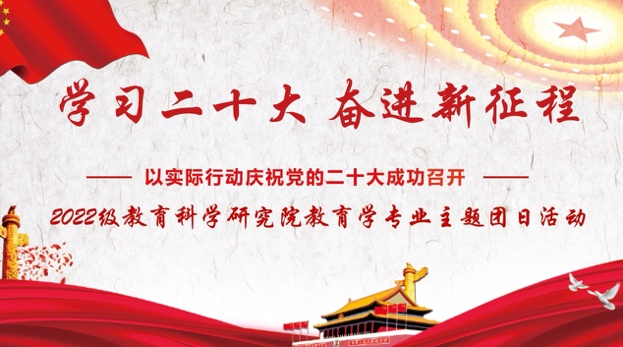 为深入学习贯彻党的二十大精神,引导广大青年学生坚定不移听党话、跟党走,激励新时代大学生牢记强国使命,展现青春担当。教育科学研究院积极响应校团委号召,于11月中旬开展“学习二十大 永远跟党走 奋进新征程”主题团日活动,2022级各团支部组织开展,院党总支书记金鹏、院长王世红、党总支副书记付丽、2022级辅导员王馨莹到会并给予指导,新生班主任、全体2022级学生参加。