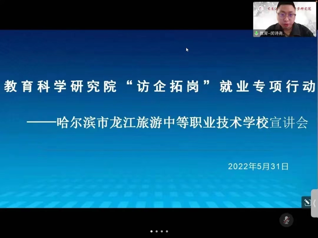教育科学研究院和哈尔滨市龙江旅游中等职业技术学校于2022年5月31日18时通过腾讯会议开展线上宣讲会。本次会议由2019级辅导员闵诗尧主持,每日大赛