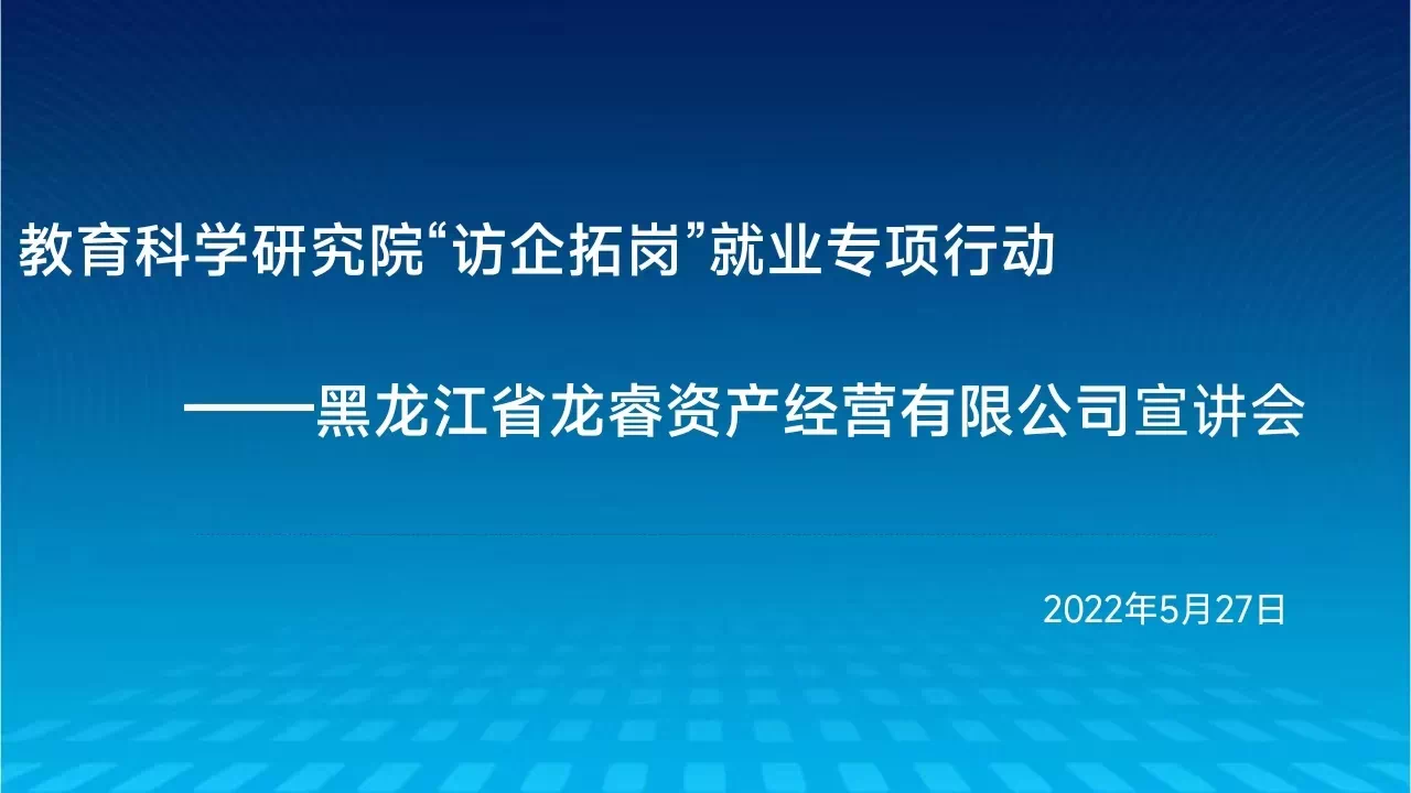 本次会议,增强了教育科研究院对黑龙江省龙睿资产经营有限公司的深入了解,进一步明确了企业的实际需求,为促进毕业生高质量的就业和院企合作打下了坚实的基础。(教育科学研究院供稿)