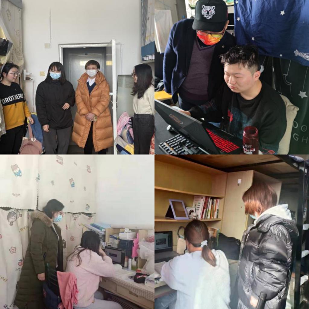 为落实学校疫情防控要求、确保学生在校安全,进一步联络师生感情,从而帮助同学们尽快进入新学期学习状态。2022年3月3日教育科学研究院党总支书记金鹏、院长王世红、副书记付丽及辅导员闵诗尧、梁曼、王馨莹一同走访学生寝室,送去关怀与温暖。