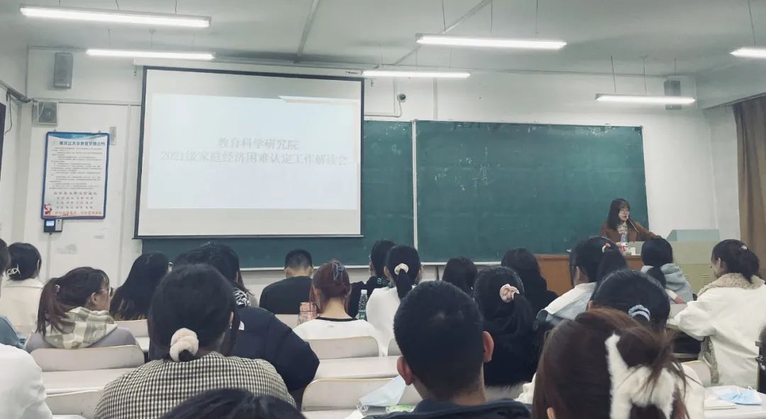 为响应党和国家对普通高等学校家庭经济困难学生的关怀,帮助困难生顺利完成学业,做到精准资助,切实做好教育科学研究院家庭经济困难学生评定工作,2021年10月26日至29日间2021级先后召开困难生认定解读会及认定大会,会议由2021级辅导员王馨莹老师主持,2021级全体学生、困难生互评小组及各专业评定小组成员参会。