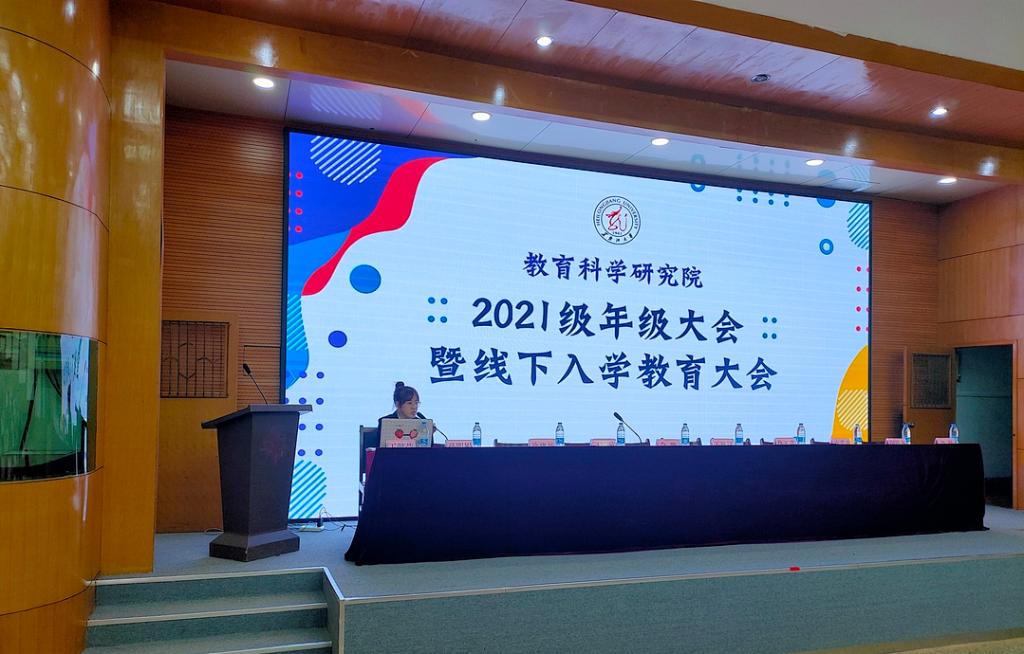 为帮助2021级新同学尽快适应大学生活,完成身份转变,保证各项工作有条不紊地推进,教育科学研究院于9月16日14时在阳光讲坛召开2021级第三次年级大会暨线下入学教育大会。本次会议由2021级辅导员王馨莹老师主讲,全体小班任、2021级全体学生参会。