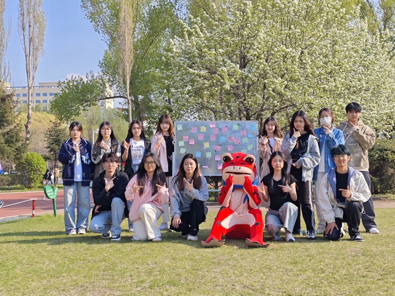 “蛙蛙”热情迎接参与者,通过拥抱、合影和操场游戏,迅速拉近与同学们及小朋友的距离,并送上“天天开心”的暖心祝福。
