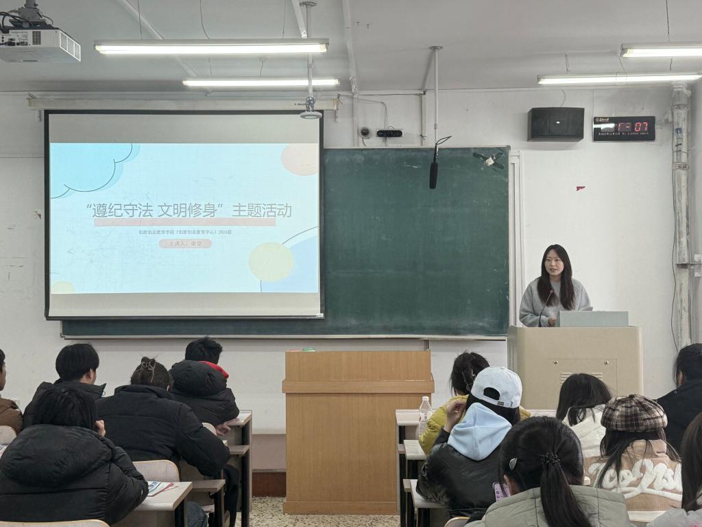 (创新创业教育中心)各班级开展“遵纪守法,文明修身”的主题班会活动,全院各年级学生共同参与。