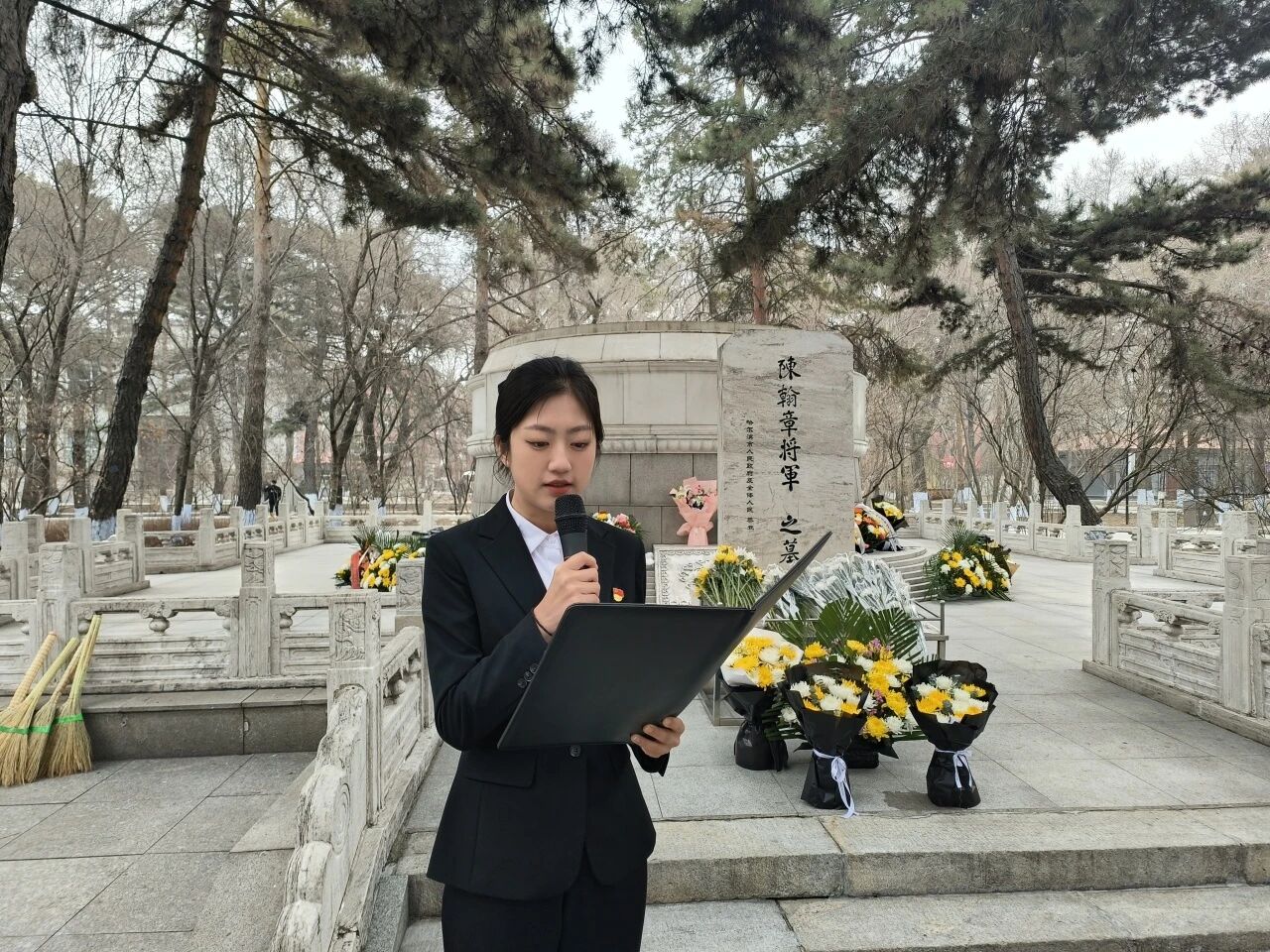 学生代表饱含深情地诵读祭文,追忆革命先烈的英勇事迹,抒发对先烈的崇敬与缅怀之情。