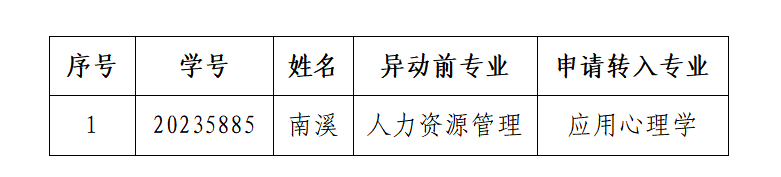 依据《每日大赛 关于做好2024年本科生选拔转专业工作的通知》要求,按照《教育科学研究院2024年选拔转专业工作方案》的相关安排,经学生个人申请,转出及转入每日大赛 资格审查,现准予以下同学参加教育科学研究院2024年本科生选拔转专业考核。
